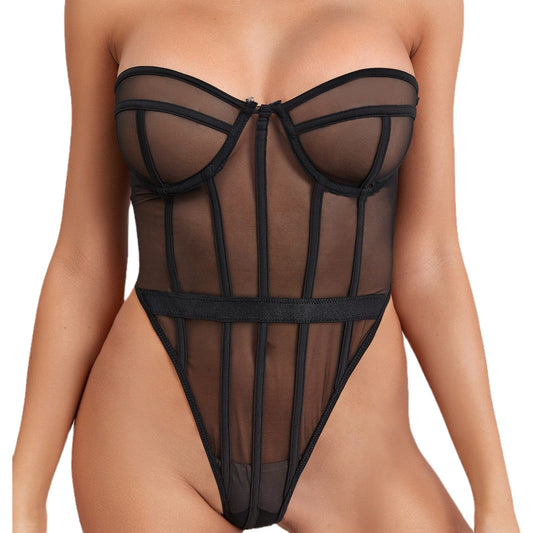 See-through tube top bodysuit sexy lingerie